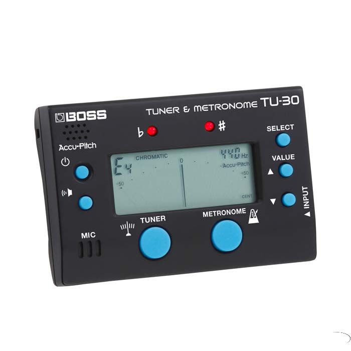 Todo lo básico ha sido heredado, incluyendo Accu-Pitch, múltiples modos de afinación y patrones rítmicos, la habilidad de emitir timbres de referencia y mas. Combinando la venerada afinación BOSS con un versátil metrónomo, el TU-30 es el compañero vital para el aprendizaje, práctica e interpretación.
