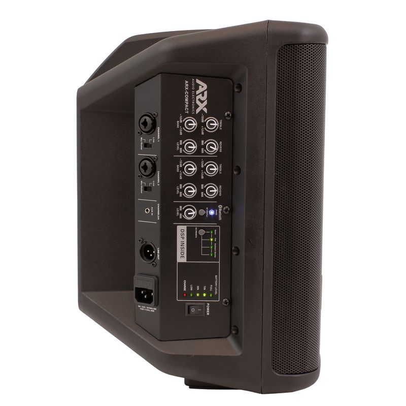 Con indicadores de porcentaje de batería, selector de presets de ecualización y activación de bluetooth la Arx-compact ofrece una interfaz de fácil interacción.