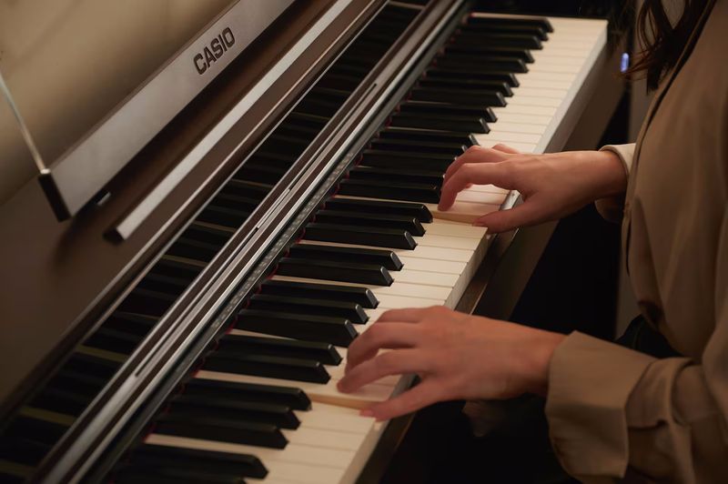 Equipado con un sistema de sonido de 2 canales y 4 altavoces que ayuda a crear una resonancia natural que le hará sentir como si tuviera un piano de cola justo delante.